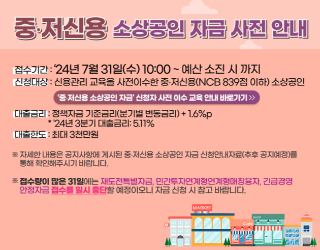 저신용 소상공인 정책자금은 본 신청·접수 외 예비 접수를